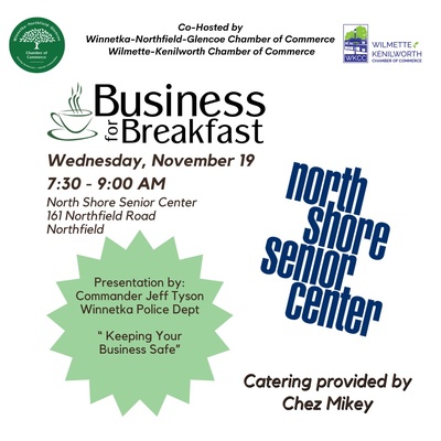 Join us for a hot breakfast, North Shore business networking and a presentation on "How to Keep Your Business Safe" by Winnetka Police Commander Jeff Tyson.